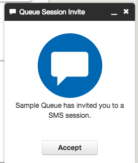 - When an incoming message has been sent into the queue, call center agents assigned to the queue will receive a Queue Session Invite.